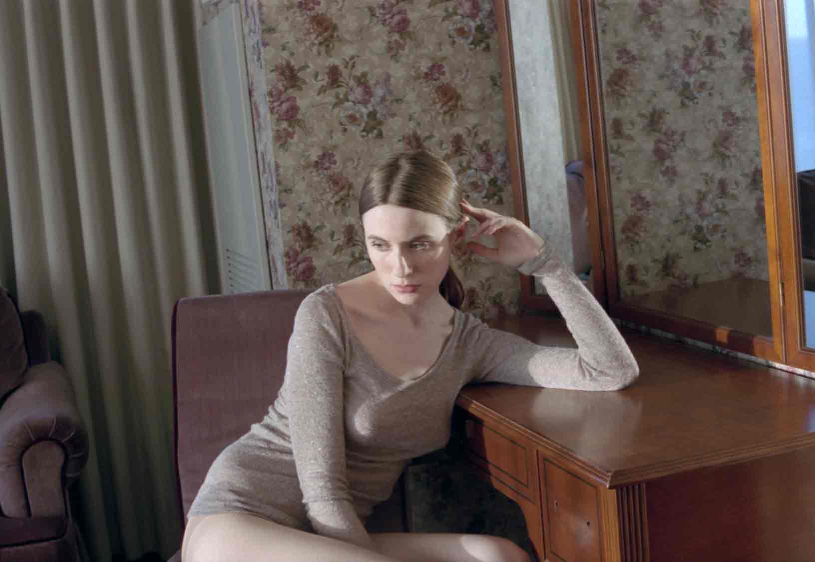 You can imagine this friend wondering the same questions: “What is she thinking? Why is she making that face?” This friend, or lover, would stand just behind her shoulder, his or her head resting weightlessly on her floral wallpaper. He’s close enough to her, yes. He can almost hear her breathing, but his questions have no answers.