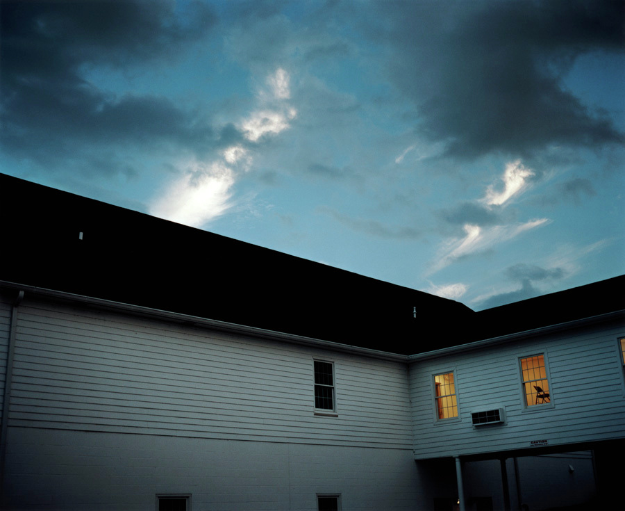 That feeling is very intentional. The image you mentioned is from the Threshold project and was a reflection of my anxiety about facing the unknown after graduation. The Nothing But project is also about anxiety, but on a greater scale. It started around 2008 when I felt bombarded with devastating news about human malevolence and natural disasters. I started this project focusing solely on location and composition and finally realized that I needed to shoot it only on very overcast or stormy days. In many projects, I photograph when the natural and artificial light balances in intensity. The time at twilight is so fleeting that it may seem unnatural. Clouds play a large role in my work — they serve as compositional devices but also provide an ominous mood.