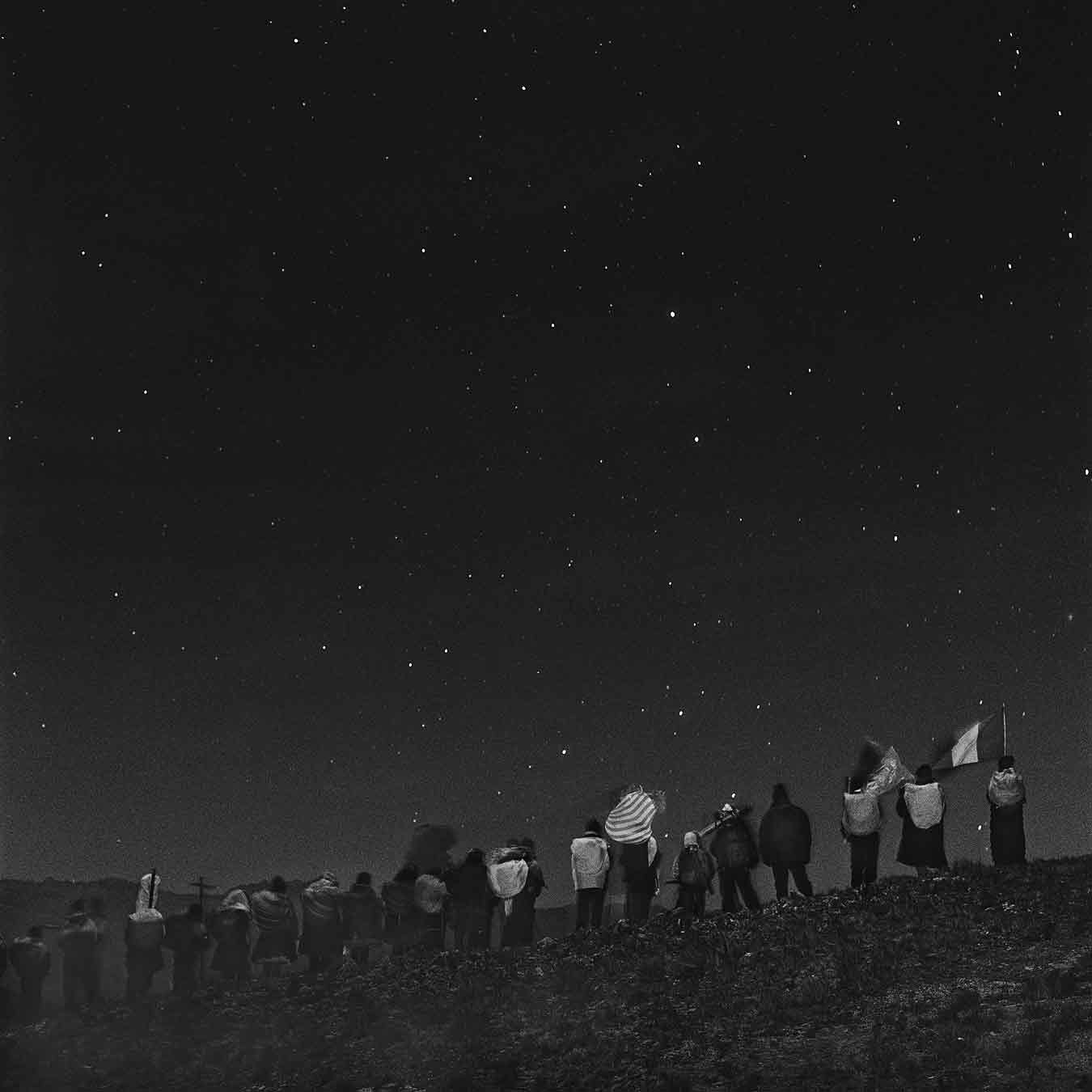 The pilgrims dance and sing for four days and nights, only breaking briefly for meals and rest. It is non-stop frenetic activity. All the while, you are in this Andean valley surrounded by glaciers and a thousand stars above. I chose to work with black and white to best represent that fluidity from day to night.