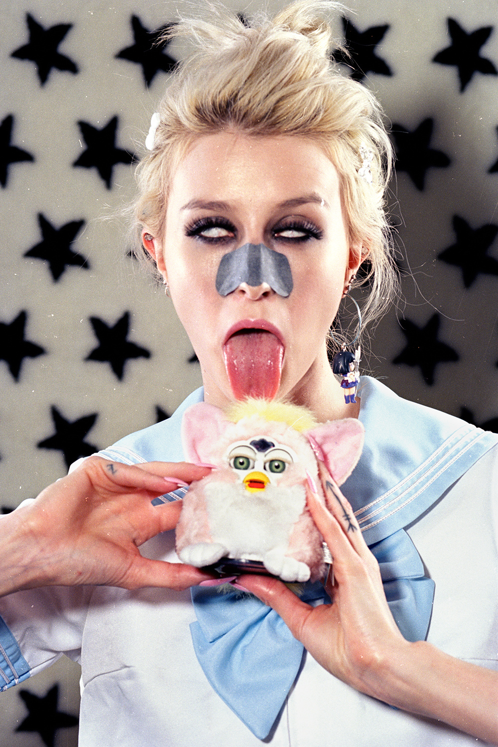 I love them all like my precious children! But I’ll tell you, I’m really enamored with Raccoon Girl right now. That’s a photo of my friend Camille Mariet, who is a talented photographer herself. Her Raccoon Girl character is drawn from my memory of The Raccoon Lady, a neighborhood character where I grew up who was a demented bag lady. She was always raving unintelligibly and caked in thick, black eye make makeup.
