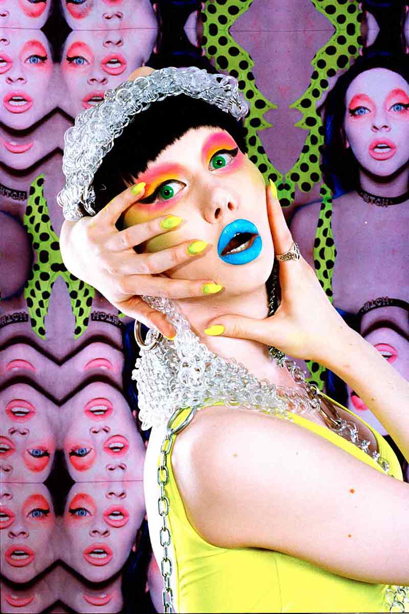 Trying to tell somebody what you loved most of Parker Day’s model portrait photography after one look is like being asked which part of a landscape you noticed while riding a roller coaster. Windswept and twitchy, you’d probably pick what’s most obvious and readily brought back to mind. “I don’t know — the blue sky, I guess,” you’d probably say. This is also true with the Los Angeles photographer’s portraits. They are high energy. All the loud character, fluorescent greens, and candy-apple reds, captured in vibrant 35mm film, have a way of making every detail jump out in high speed until all that’s left to remember is color.